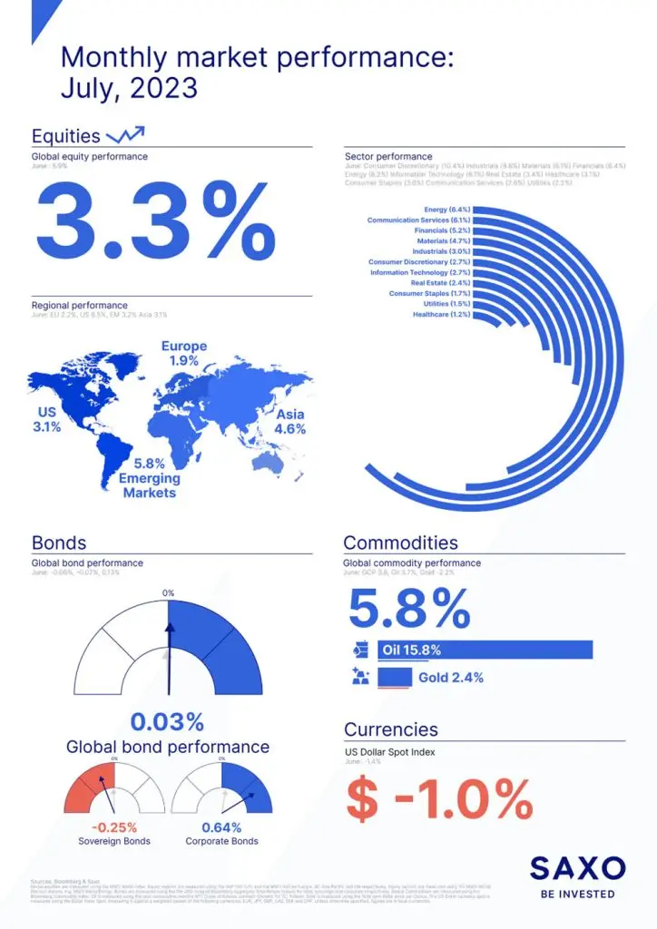 Júl pre mnohých predstavuje oddych, ľahkosť života, čas strávený s priateľmi a rodinou a najmä odsun starostí nabok. Ukazuje sa, že finančné trhy to vidia podobne. Výkonnosť akcií bola za celý mesiac pozitívna a zdanlivo zaujala pozitívny postoj aj k potenciálnemu pokračovaniu zvyšovania úrokových sadzieb zo strany centrálnych bánk.