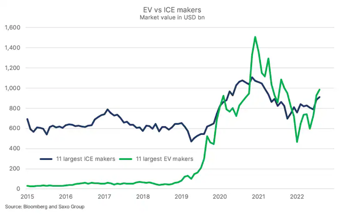 Kombinovaná trhová hodnota 22 najväčších výrobcov automobilov na svete (výrobcovia elektrických vozidiel a výrobcovia áut so spaľovacích motorom) vzrástla na dnešných 1,9 bilióna USD z 0,7 bilióna USD v decembri 2015, čím prekonala rast globálnej výroby automobilov za rovnaké obdobie. „Naznačuje to, že investori stále počítajú s tým, že marža batériových áut bude v budúcnosti vyššia ako je marža spaľovacích áut. Tento predpoklad je zároveň stále jedným z najväčších kľúčových rizík pre investorov do Tesly a ďalších výrobcov elektromobilov,“ upozorňuje akciový stratég Saxo Bank Peter Garnry.