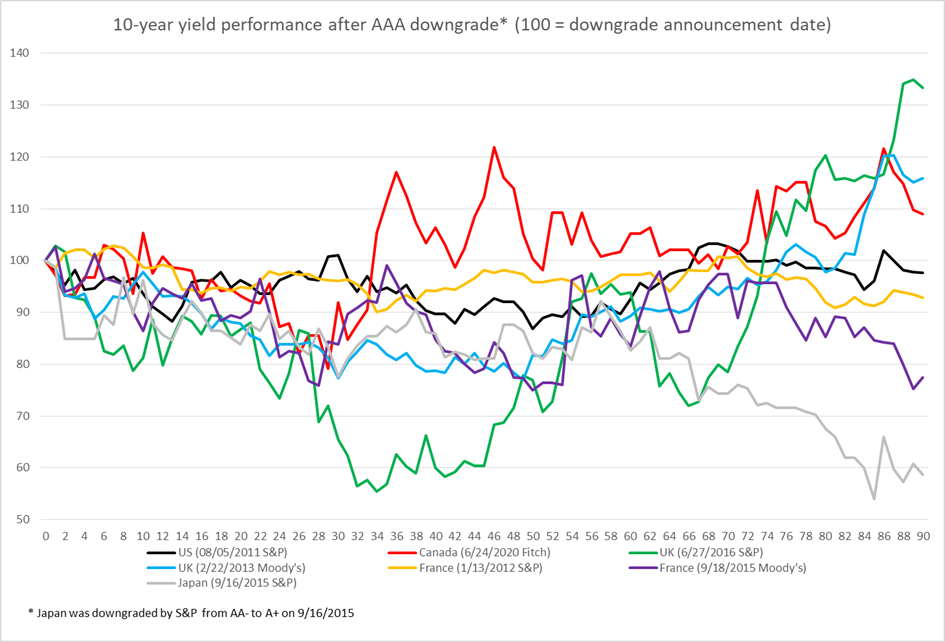 V roku 2011 Spojené štáty stratili svoju „korunu“ trojitého AAA. Vtedy sa agentúra S&P rozhodla rating znížiť a odvtedy ho už nezvýšila. Bol to akýsi míľnik. Spojené štáty sa zrazu nestali bezrizikovými. Denník Financial Times napísal, že rozhodnutie agentúry S&P poukázalo na oslabenie finančnej pozície najmocnejšej krajiny sveta. Medzitým časopis Time zobrazil na obálke Georgea Washingtona s monoklom a titulok na obálke znel „Veľká americká degradácia“.