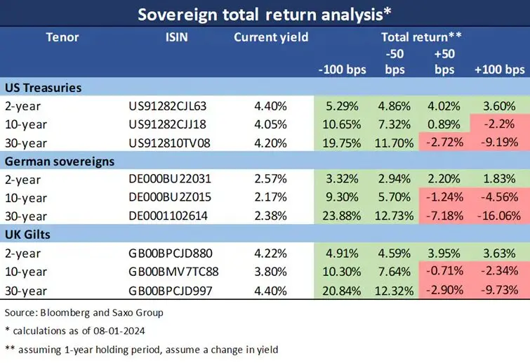 „Hoci sa neočakáva rýchle a agresívne znižovanie sadzieb, recesia v americkej ekonomike by to mohla rýchlo zmeniť. Krehká geopolitická situácia pridá ďalšie palivo volatilite na trhu,“ vysvetľuje situáciu Althea Spinozzi zo Saxo Bank. Spojené štáty čelia geopolitickému napätiu na Ukrajine, v Izraeli a na Taiwane. Po novembrových voľbách v USA sa politická situácia pravdepodobne v roku 2024 dostane do patovej situácie, čím sa znížia fiškálne impulzy a zvýši sa neistota ekonomického rastu. To si vyžaduje opatrnosť centrálnych bánk pri ďalšom sprísňovaní alebo jej príliš rýchlom uvoľňovaní, čo znamená vyššiu volatilitu na dlhopisových trhoch.