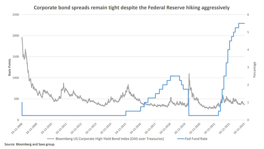 Zhoršujúca sa ekonomická aktivita a vysoké sadzby neveštia nič dobré pre rizikové aktíva, čo by mohlo viesť k vyšším spreadom podnikových dlhopisov pri spomaľovaní tržieb a stlačených maržiach.
