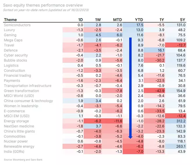 Ďalším víťazom budú polovodiče, ktoré zohrávajú kľúčovú úlohu a bez stabilného dodávateľského reťazca môžeme priam zabudnúť na vojenské vybavenie, autá, počítače a dátové centrá. Americký zákon o čipoch zmenil odvetvie polovodičov a momentálne do nich smeruje v USA aj v Európe veľký objem investícií. „Polovodičový investičný kôš Saxo Bank je najvýkonnejším košom v tomto roku, ktorý odráža výhľad silného rastu. Obranný kôš je ďalšou témou, ktorej sa tento rok darí, čo odráža skutočnosť, že vyriešenie vojny na Ukrajine môže trvať roky a Európa bude musieť v oblasti obrany urobiť viac,“ vysvetľuje odborník Saxo Bank
