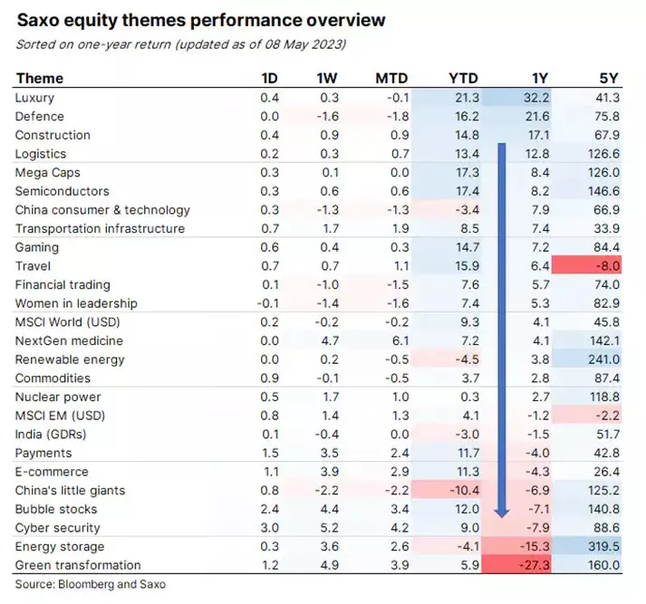 Za posledný rok sa najlepšie darilo akciám firiem z odvetví luxusu, obrany a stavebníctva. Potvrdzuje to vývoj tematických akciových kočov Saxo Bank. Obrana so stavebníctvom rastú vďaka fragmentácii sveta, ktorá vedie k masívnemu budovaniu armády v Európe a významným investíciám do infraštruktúry.