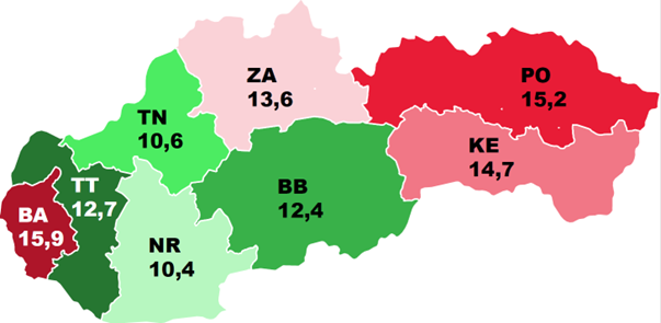 Tieto čísla vychádzajú z priemernej ceny nehnuteľností určených na bývanie v eurách za m2 v druhom kvartáli 2023 a prepočtu priemerných miezd v jednotlivých krajoch na čisté platy (tu sú údaje dostupné za 1. kvartál 2023).