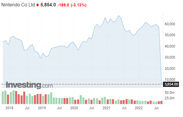 Práve počas prelomového víkendu spoločnosť Nintendo, celosvetový líder v oblasti vývoja a vydávania hier, pristúpi ku rozdeleniu akcií v pomere 10:1, presnejšie 1. októbra 2022 alebo do 4. októbra. Tak ako iné technologické akcie aj tie od Nintendo sú od začiatku roka v defenzívne a zaznamenali cca 9 % pokles.