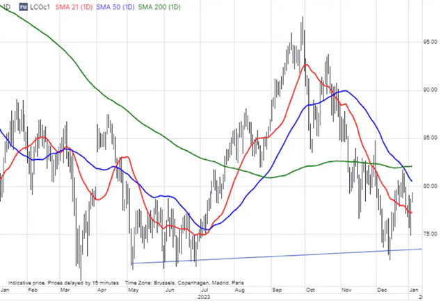 „Obchodníci sa na jednej strane zameriavajú na obavy o globálny hospodársky rast (najmä v Číne a USA) a stúpajúcu produkciu zo strany nečlenov OPEC+, na druhej strane sledujú škrty zo strany krajín patriacich do OPEC+ a tiež geopolitické riziká. Tie súvisia najmä s vývojom v Červenom mori a jeho okolí, kde útoky pirátov na komerčné lode nútia prepravcov presmerovať náklad, čo zvyšuje náklady a tiež trvanie ich transportu,“ vysvetľuje komoditný stratég Saxo Bank Olen Hansen. Okrem toho môžeme podľa neho sledovať aj pokles rizikového apetítu v súlade so zmenami v očakávanom tempe znižovania úrokových sadzieb v USA.
