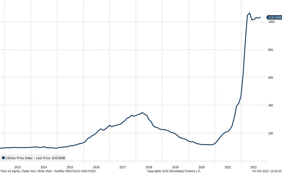 Okrem toho existujú podľa P. Garnryho ešte ďalšie dve tvrdé fyzické obmedzenia pre rast spoločnosti Tesla. „Prvým z nich je cena lítia, ktorá vzrástla na veľmi vysoké úrovne. To vytvára tlak na ceny batérií a tým aj na elektrických vozidiel,“ vysvetlil odborník Saxo Bank.