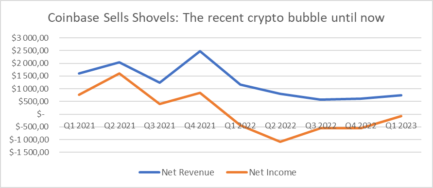 Jednou z mála firiem, ktorej schopnosť generovať hodnotu v AI je už dnes jasná, je výrobca grafických procesorov (GPU) – firma Nvidia. Ako špičkový dodávateľ výpočtovej techniky nevyhnutnej na vývoj a trénovanie modelov umelej inteligencie (napríklad modelov od OpenAI) dosiahla Nvidia v minulom roku výrazný rast výnosov. Príbeh Nvidie poukazuje na príslovie, že „cez zlatú horúčky treba predávať lopaty“. „Ide o to, že je výhodnejšie poskytovať infraštruktúru tým, ktorí naskočili na rastúci trend, než sa venovať samotnému ošiaľu,“ vyvstelil kryptoodborník Saxo Bank. V prípade krypto to bola v roku 2021 firma Coinbase, ktorá výrazne profitovala z toho, že uľahčila obchodovania s kryptomenami. „Zrazu však krypto bublina praskla, Coinbase padli tržby a cena jej akcií klesla až o 90% za jediný rok. Čas ukáže, či Nvidia ostane v nekonečnej zlatej horúčke, alebo bude nasledovať príbeh Coinbase,“ dodáva Mads Eberhardt.
