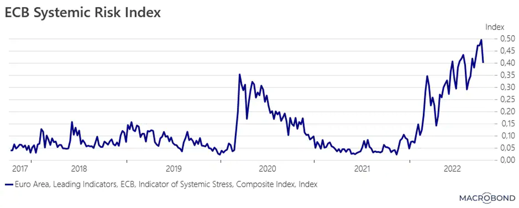 Index systémového rizika ECB je založený na pätnástich ukazovateľoch finančného stresu, vrátane výmenných kurzov alebo spreadov. Pred Covidom sa úroveň medzi 0,25 a 0,30 označovala za nebezpečnú oblasť pre eurozónu, ktorá by mohla prinútiť ECB prijať holubičí postoj alebo vstúpiť na trh, či už verbálnou  komunikáciou, alebo nákupom dlhopisov. Veci sa však zmenili. „Ukazovateľ dosiahol vrchol na úrovni 0,50 začiatkom októbra a to bez akéhokoľvek zásahu zo strany centrálnej banky. Je tu však aj dobrá správa: index mierne klesá. Stále je vysoko (na hodnote 0,40), ale pokles naznačuje, že dysfunkcia trhu s dlhopismi, ktorá nabrala na sile po „rozpade“ trhu s dlhopismi Spojeného kráľovstva po oznámení nákladného „minirozpočtu“,  sa postupne vytráca,“ hovorí Christopher Dembik, makroekonomický analytik Saxo Bank.