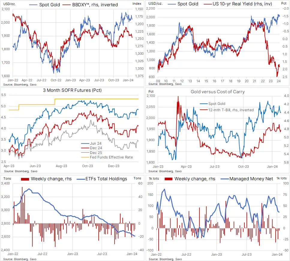 Počas minulého týždňa sa optimizmus na trhu znížil, keď sa trh posunul od očakávania viac ako šiestich znížení úrokových sadzieb v USA v tomto roku po 25 bázických bodov na menej ako päť, a zároveň stávky na to, že prvé zníženie príde už na stretnutí 20. marca, klesli pod 20 %. „Vzhľadom na to bude krátkodobé smerovanie zlata a striebra aj naďalej diktované prichádzajúcimi hospodárskymi údajmi a ich vplyvom na dolár, výnosy a najmä na očakávania ohľadne zníženia sadzieb,“ očakáva komoditný stratég Saxo Bank, Ole Hansen.