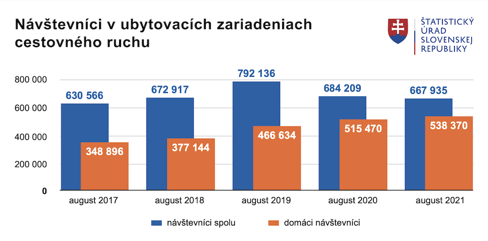 V auguste tohto roka navštívilo ubytovacie zariadenia cestovného ruchu na Slovensku vyše 538-tisíc domácich dovolenkárov. V porovnaní s vlaňajškom ide o medziročný rast o 4,4 percenta, v porovnaní s rokom 2019 dokonca o vyše 15 percent. Vyplýva to z údajov...