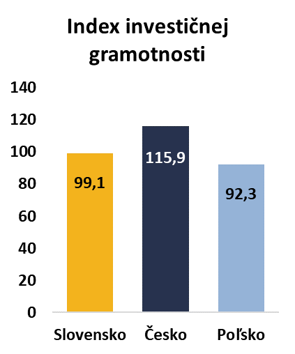 V porovnaní s minulým rokom úroveň indexu klesla o 1,5 bodu na 99,1 bodu. V Česku naopak investičná gramotnosť stúpla na 115,9 bodu. Portu prvýkrát meralo investičnú gramotnosť aj v Poľsku, ktoré pri prepočte na slovenskú bázu získalo 92,3 bodu.