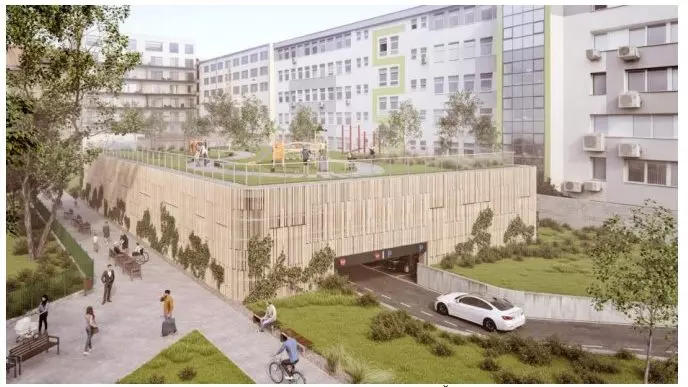 Navyše, parkovací dom pokryje zelená strecha so vzrastlou zeleňou a voľnočasovými prvkami, ktoré budú využívané obyvateľmi okolitých domov, píše sa v zámere. Na streche parkovacieho domu chcú architekti nainštalovať mobiliár, ale aj vybudovať detské ihrisko, bežeckú dráhu či lezeckú stenu.